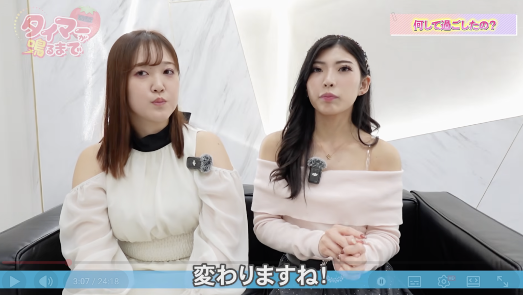 アインズ公式YouTube「タイマーが鳴るまで」メインキャストのさきさんとタキナさん。彼女たちのお仕事は、お客様と過ごす時間を大切にする特殊なものです。特に注目すべきは、ただお仕事をするだけでなく、食事やデート、さらには宿泊まで、お客様とのプライベートな時間を共有することだといいます。一体どんなお仕事内容なのか、その長時間にわたるお仕事の裏側には何が隠されているのでしょうか?