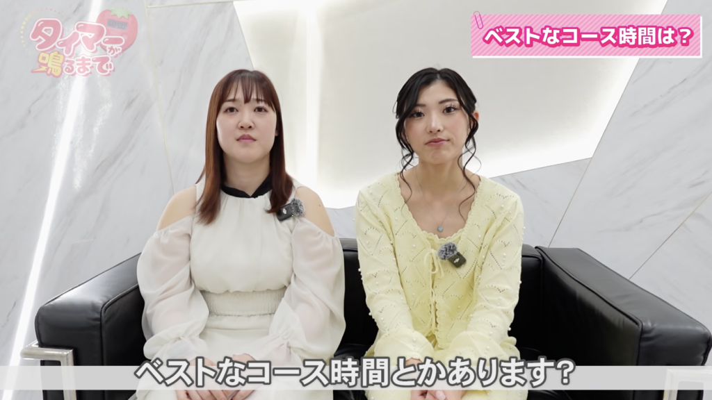 動画内で語られた「ベストなコース時間」には、納得の連続でした。さきさんが推奨するおすすめのコース時間は90分から120分。タキナさんは105分から125分でした。