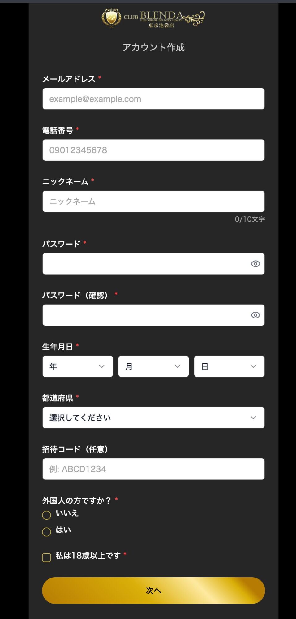 ・パスワードを新設入力・生年月日・都道府県